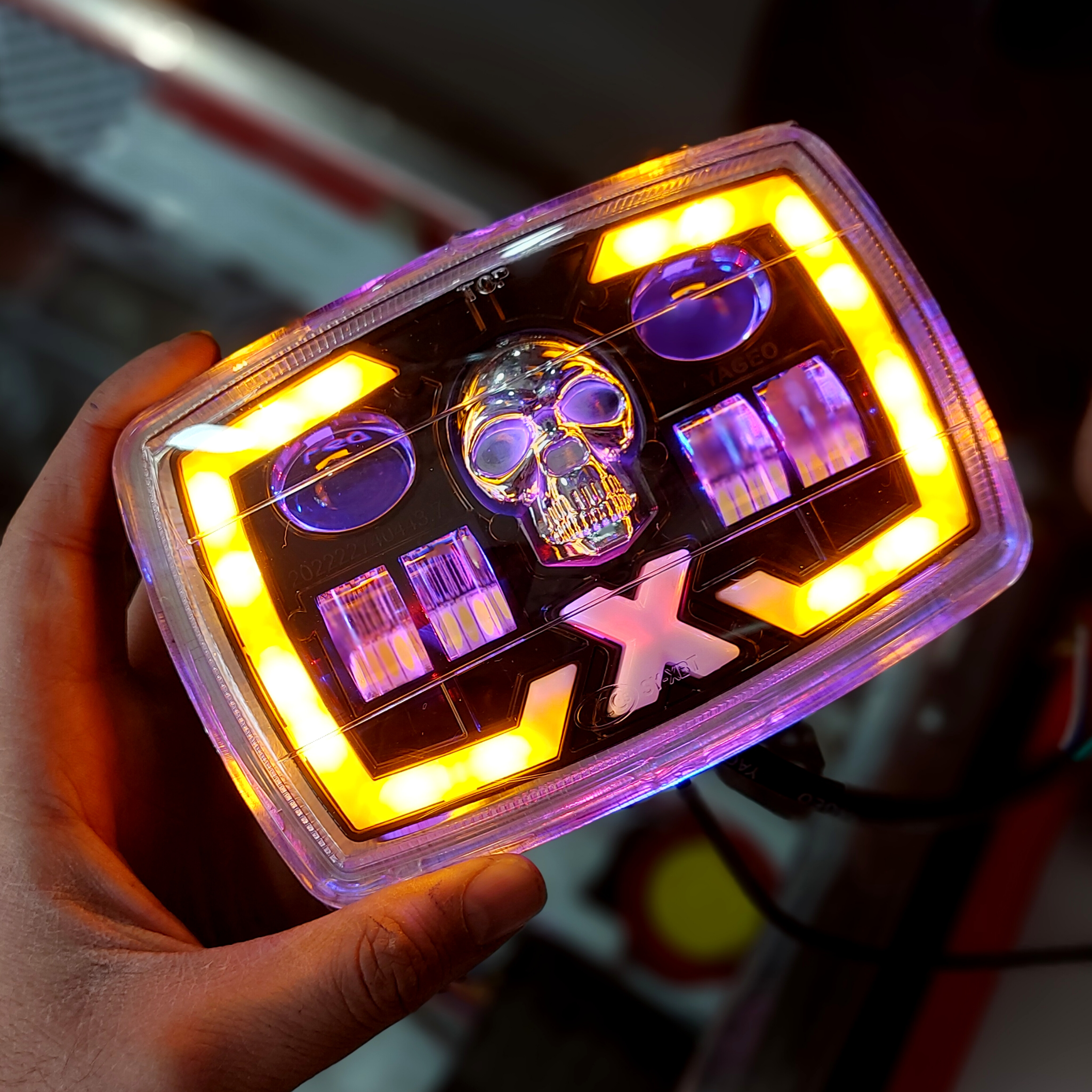 چراغ جلو اسکلتی هندا جنس خارجی دارای توشهری دارای راهنما دارای سو بالا و سو پایین کات نور و پرتاب نور فوق العاده قابل نصب روی تمامی هنداها